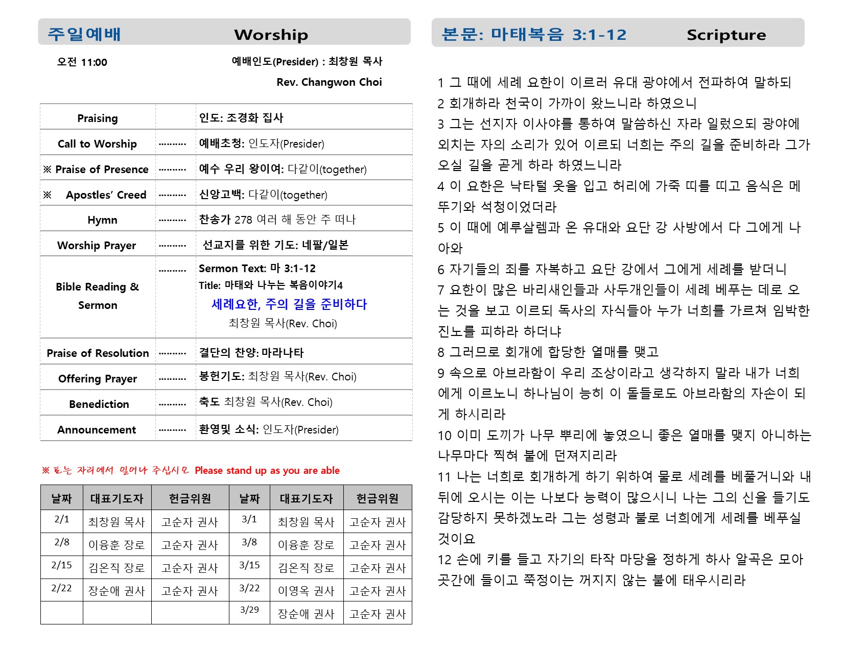 예배시간