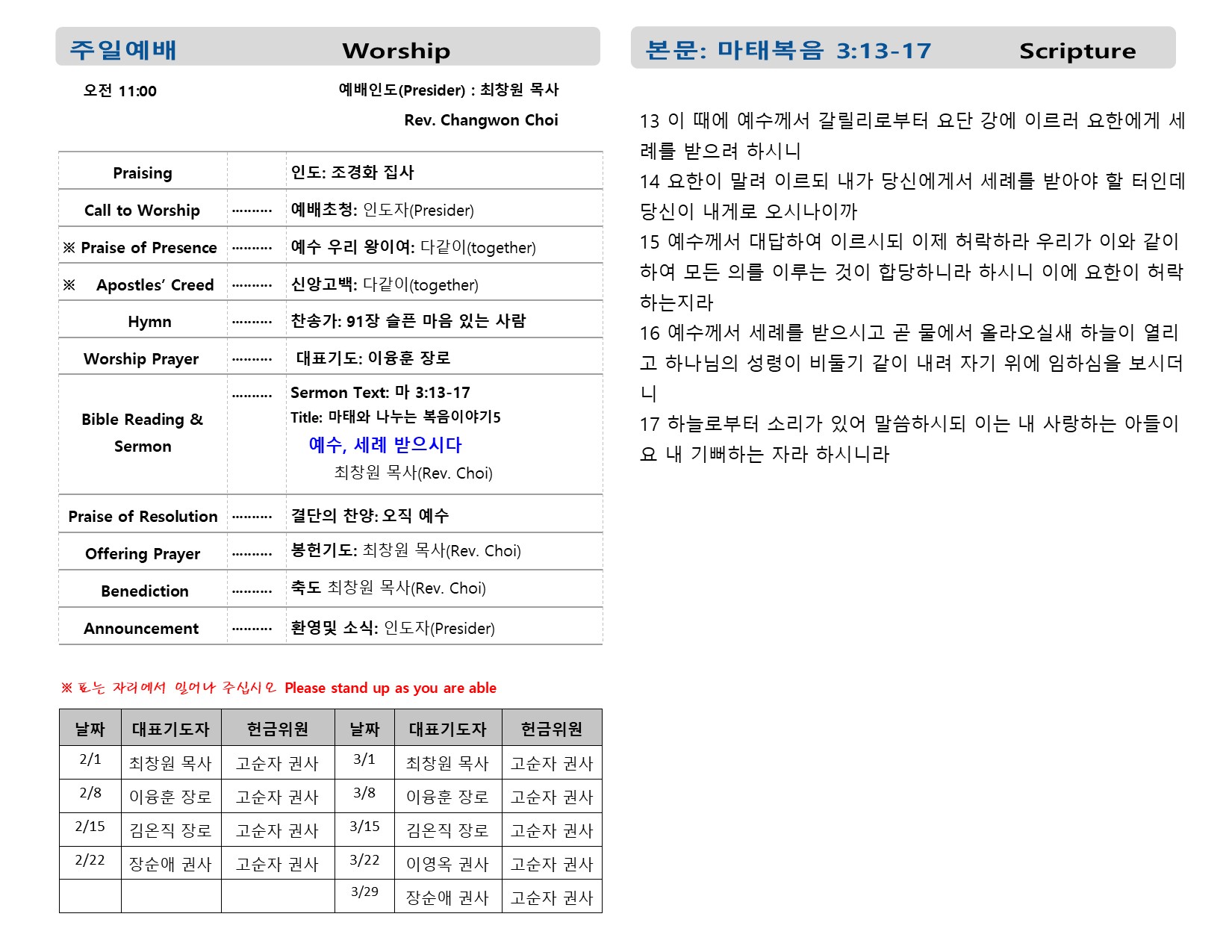 예배시간