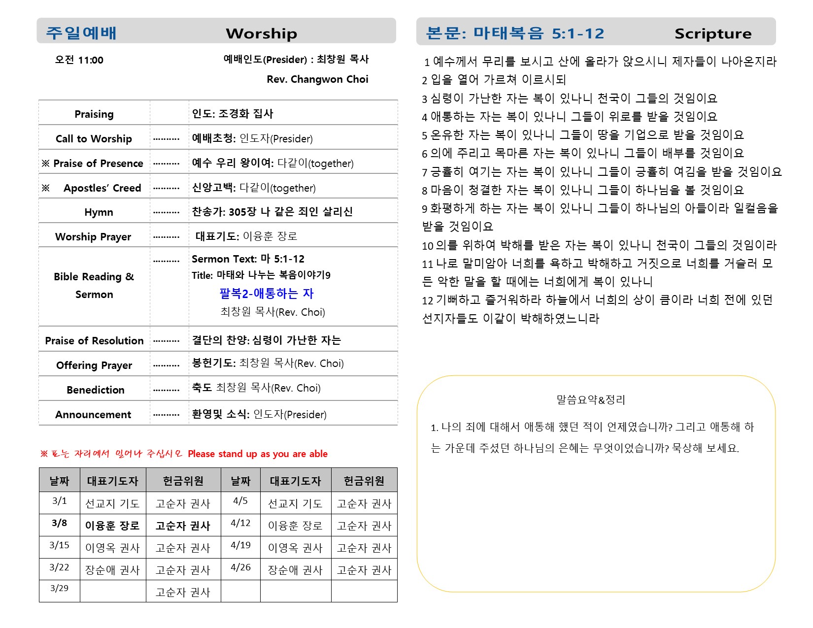 예배시간