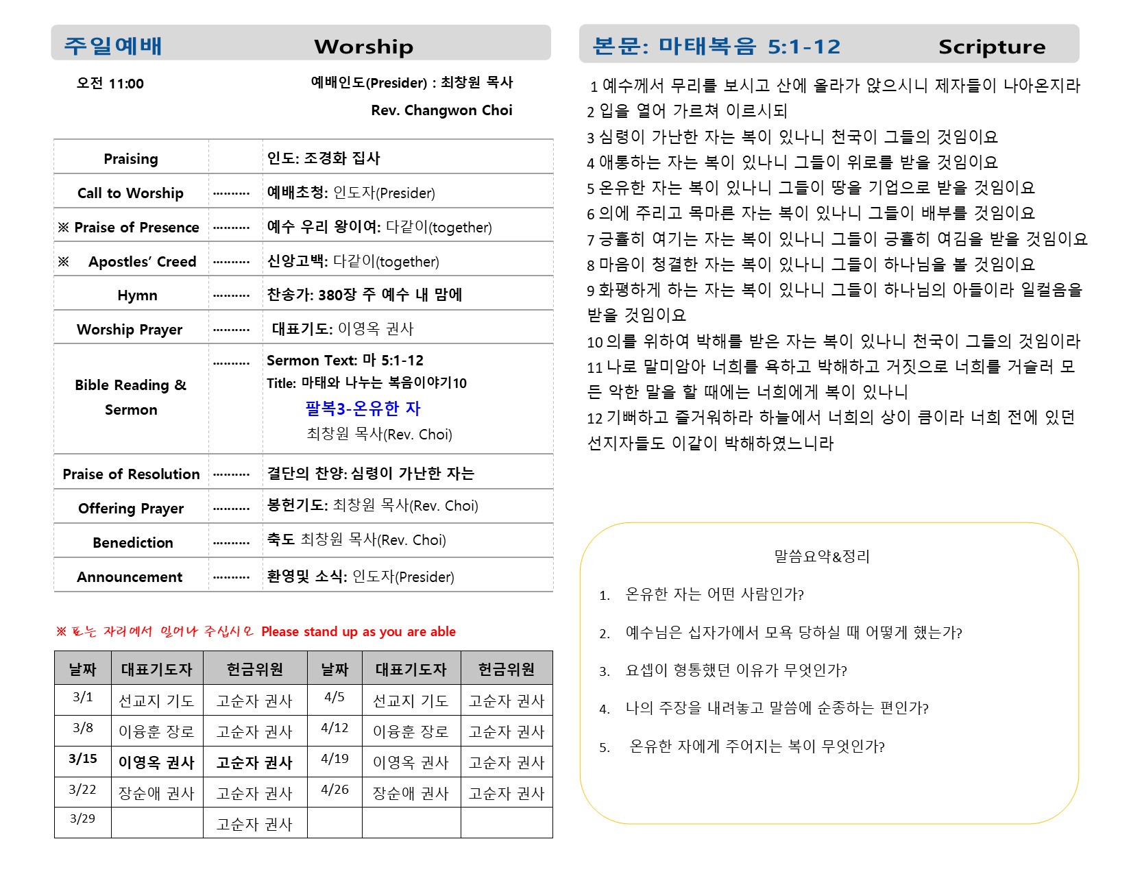 예배시간